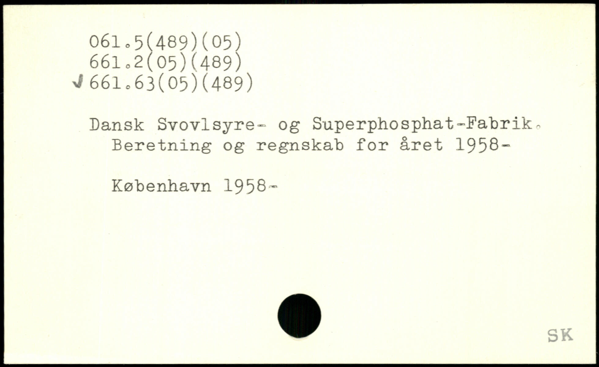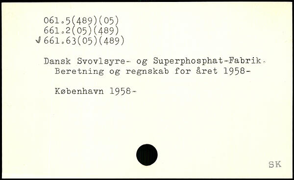 Dansk Svovlsyre-“ og Superphosphat-Fabrik, Beretning og regnskab for året 1958-