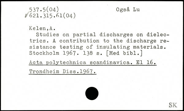 Studies on partial discharges on dielectrics. A contribution to the discharge resistance testing of insulating materials.
