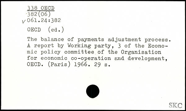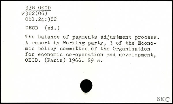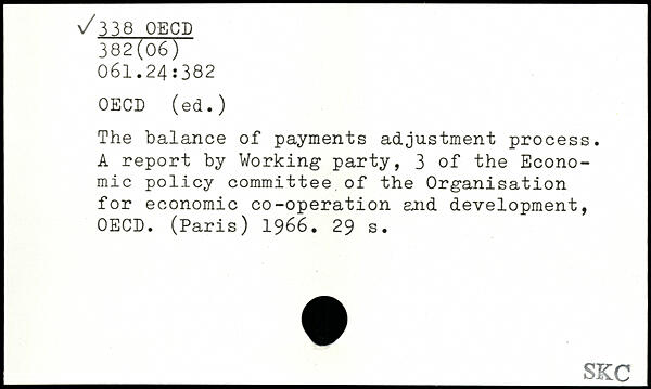 The balance of payments adjustment process. A report by Working party, 3 of the Economic policy committee of the Organisation for economic co-operation and development, OECD. (Paris) 1966.