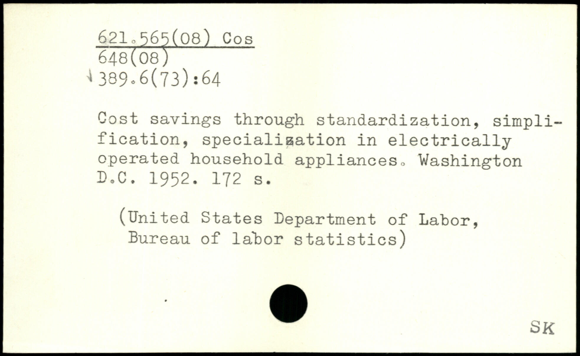 Cost savings through standardization, simplification, specialization in electrically operated household appliances<> Washington D.C. 1952.