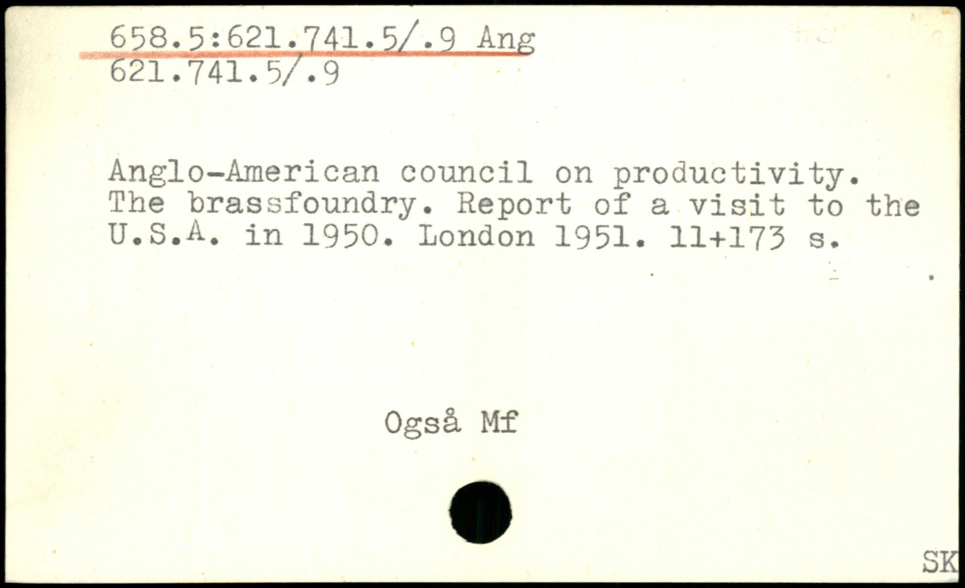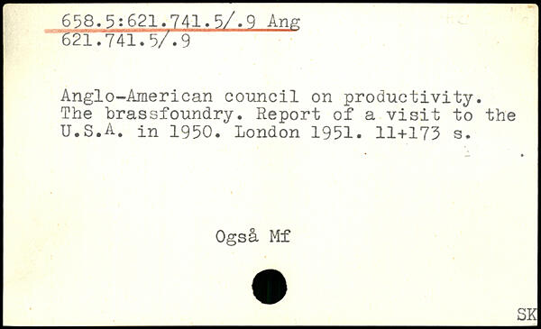 Anglo-American council on productivity. The brassfoundry. Report of a visit to the U.S.A. in 1950.