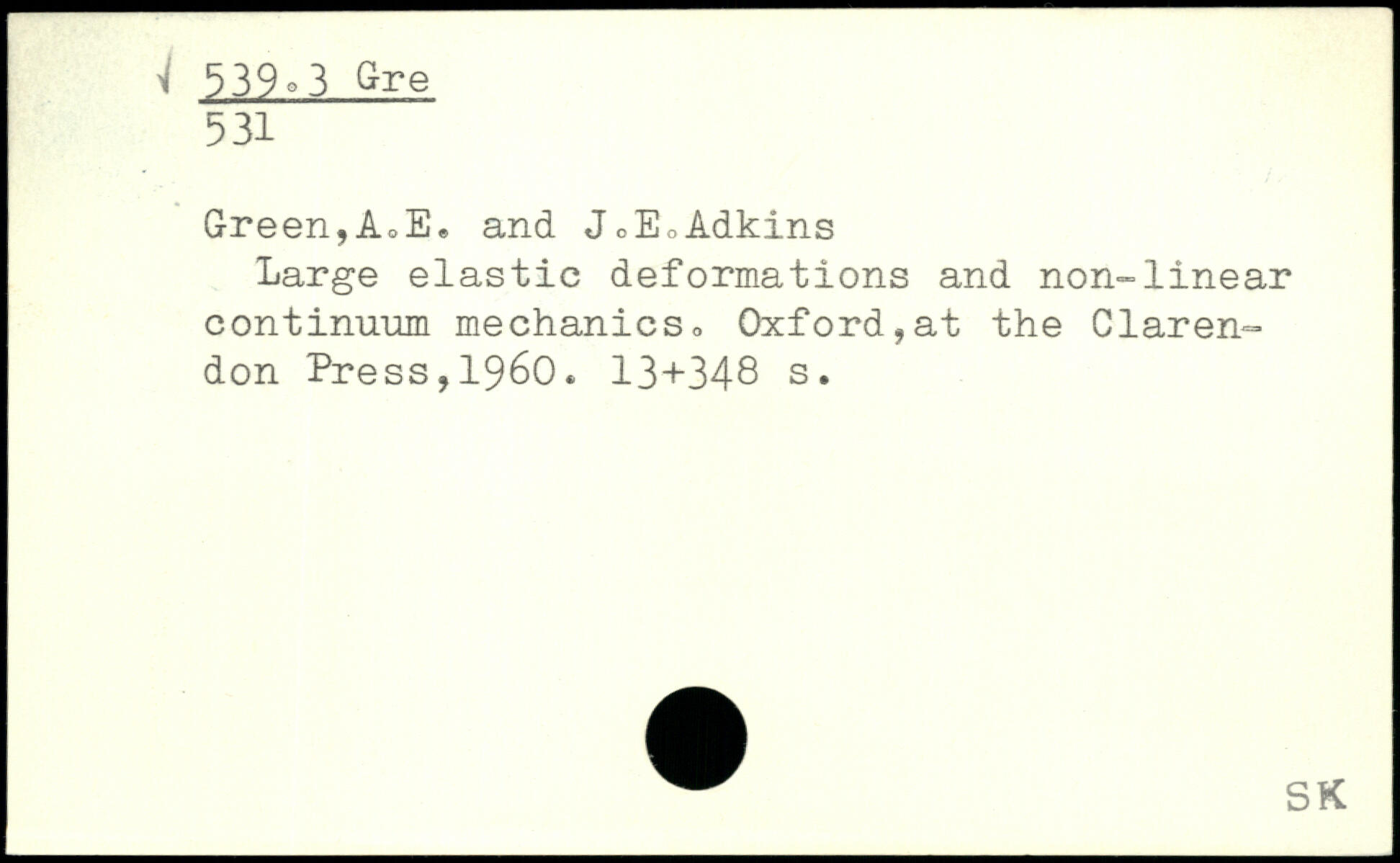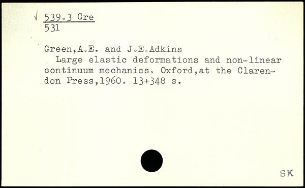 Green,A.Ee and JoEoAdkins Large elastic deformations and non-linear continuum mechanicso Oxford,at the Clarendon Press,1960.