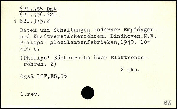 Daten und Schaltungen moderner Empfängerund Kraftverstärkerröhren. Eindhoven,N.V. Philips. gloeilampenfahrieken,1940. 10+ 4O