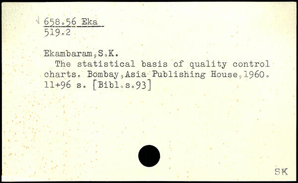 Ekamb aram , S ,K. The statistical basis of quality control charts,, Bombay,Asia Publishing Housec1960<