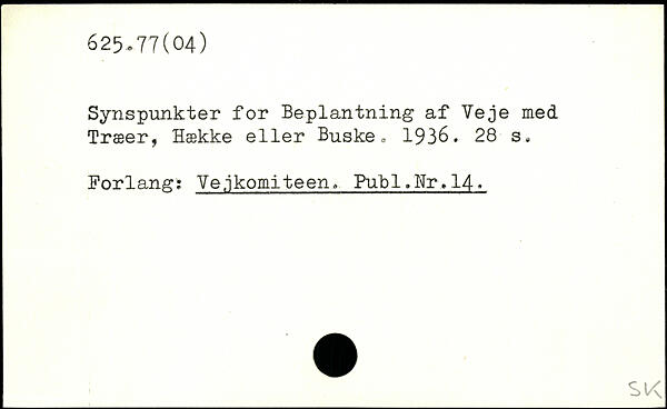 Synspunkter for Beplantning af Veje med Træer, Hække eller Buske,, 1936.