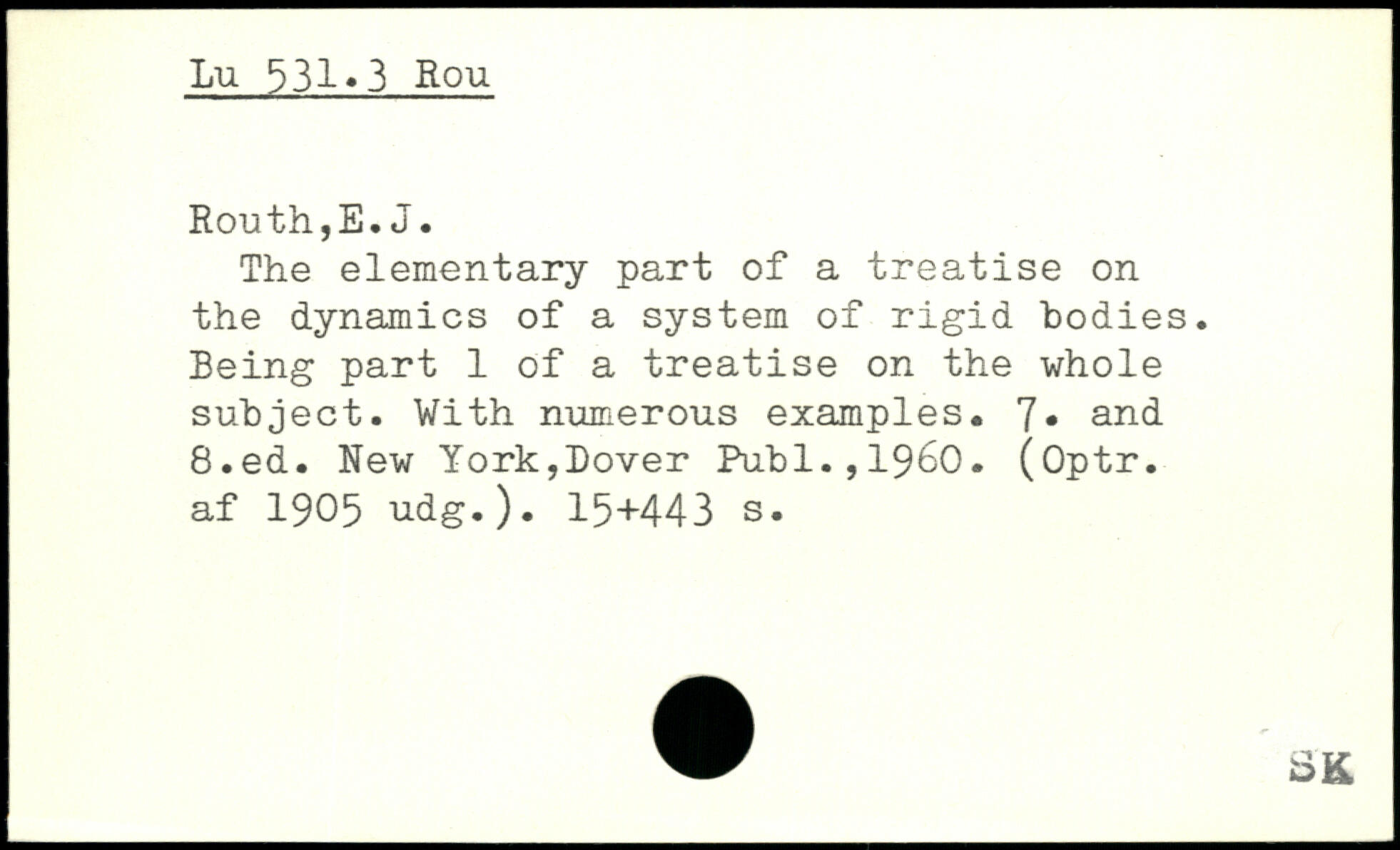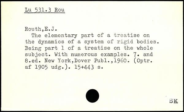The elementary part of a treatise on the dynamics of a system of rigid bodies. Being part 1 of a treatise on the whole subject. With numerous examples. 7. and