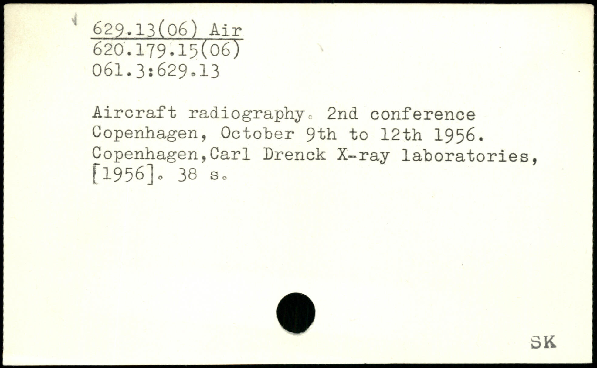 Aircraft radiography, 2nd conference Copenhagen, October 9th to 12th 1956.