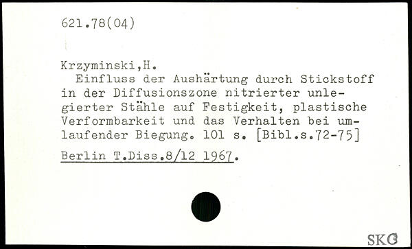 Einfluss der Aushärtung durch Stickstoff in der Diffusionszone nitrierter unlegierter Stähle auf Festigkeit, plastische Verformbarkeit und das Verhalten bei umlaufender Biegung,