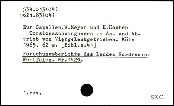Zur Capellen,W.Meyer und H.Houben Torsionsschwingungen im An- und Abtrieb von Viergelenkgetrieben.