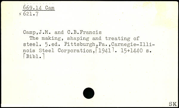 The making, shaping and treating of steel. 5. e<i. Pittsburgh,Pa. ,Carnegie-1111nois Steel Corporation,I 19411.