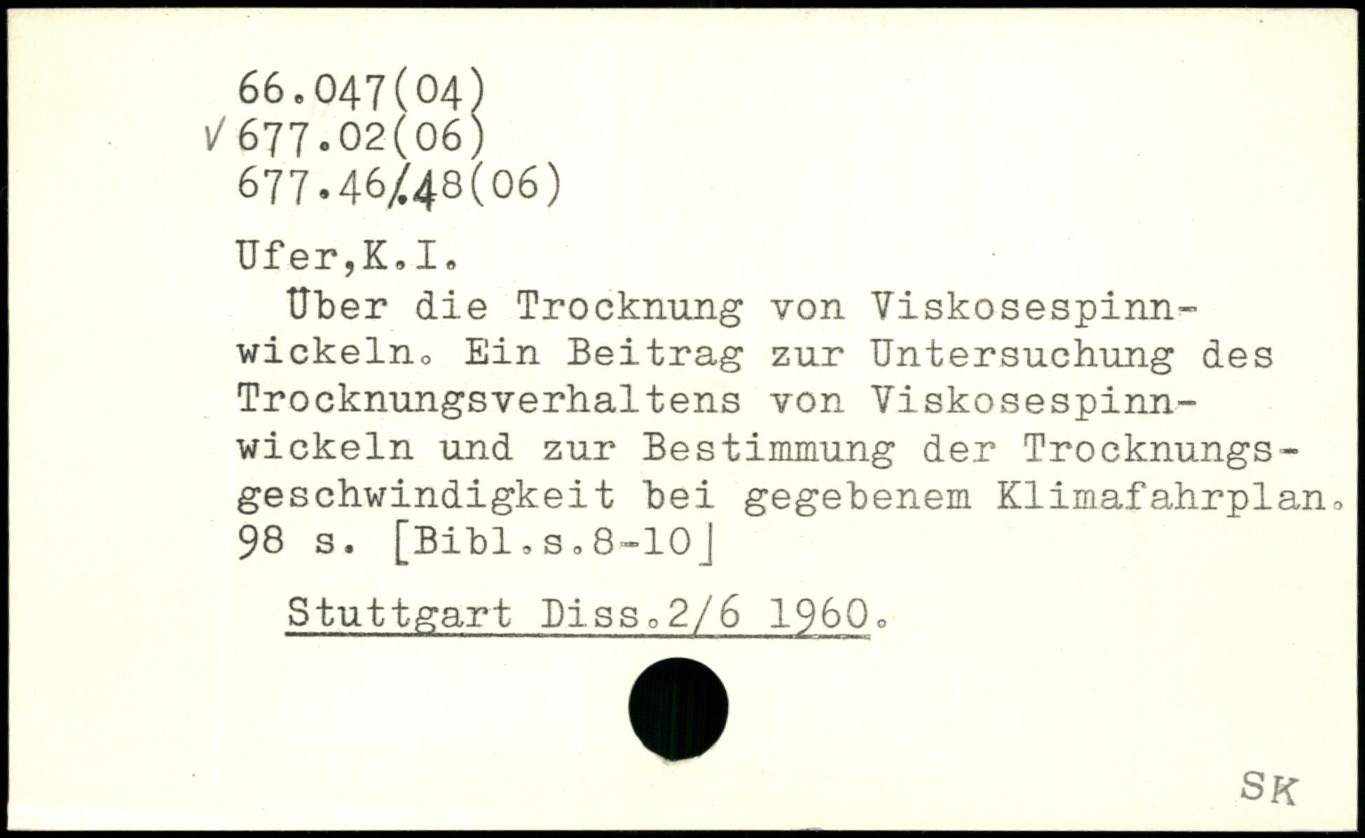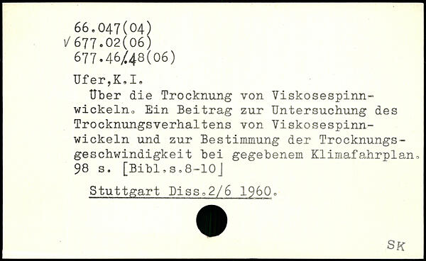 Uber die Trocknung von Viskosespinnwickelno Ein Beitrag zur Untersuchung des Trocknungsverhaltens von Viskosespinnwickeln und zur Bestimmung der Trocknungsgeschwindigkeit bei gegebenem Klimafahrplan.