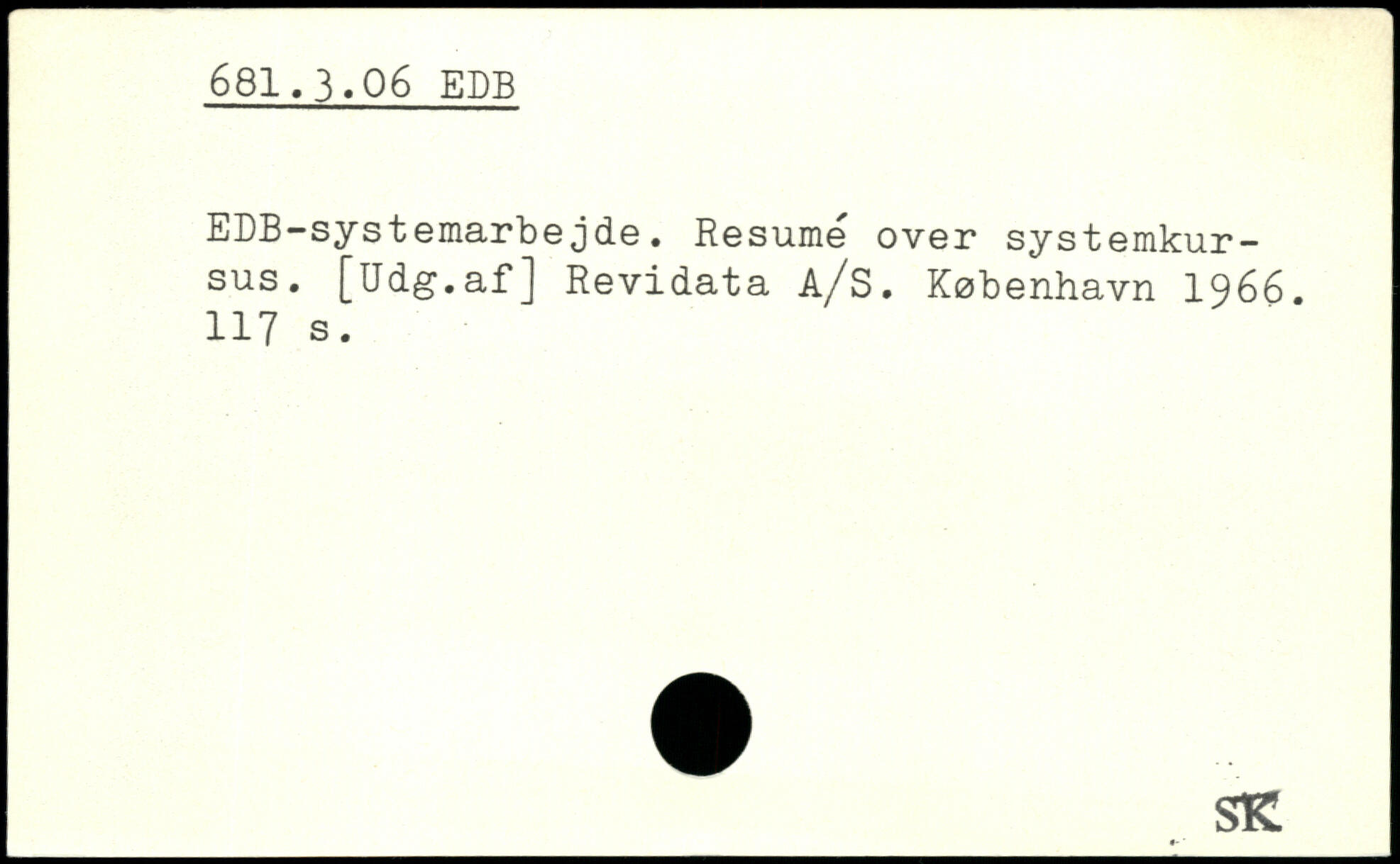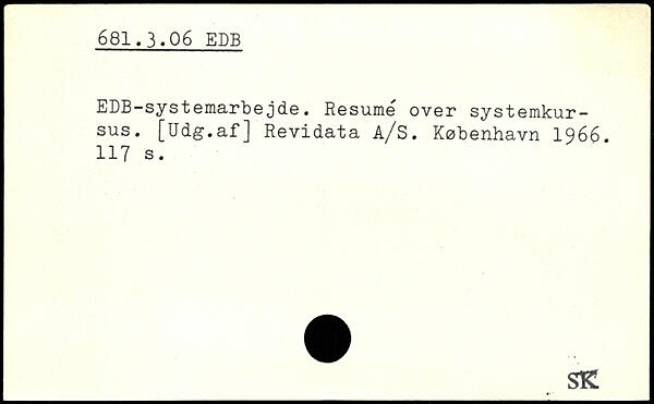 EDB-systemarbejde. Resumé over systemkursus. [Udg.af] Revidata A/S.