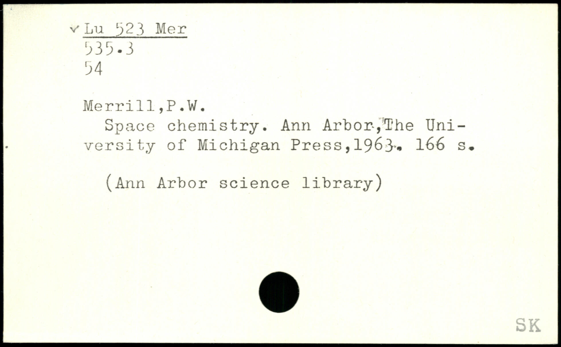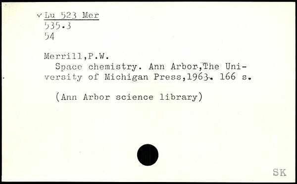 Space chemistry. Ann Arbor.,The University of Michigan Press, 1963.. 166