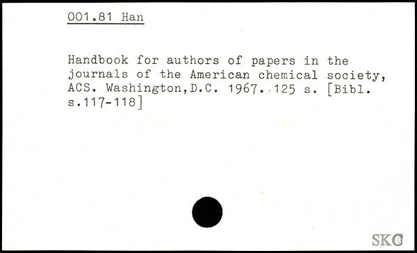 Handbook for authors of papers in the journals of the American chemical society, ACS. Washington,D.C. 1967-