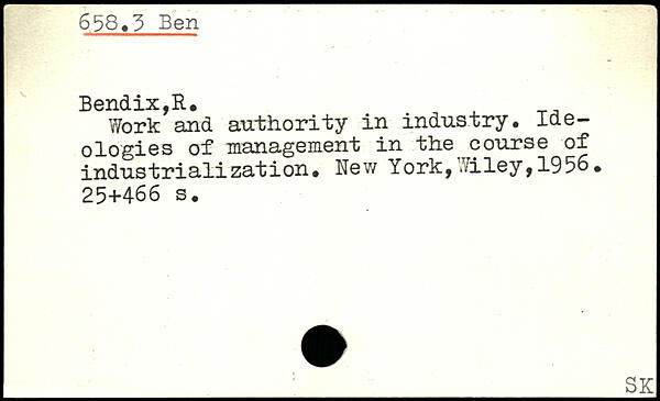 Work and authority in industry. Ideologies of management in the course of industrialization.