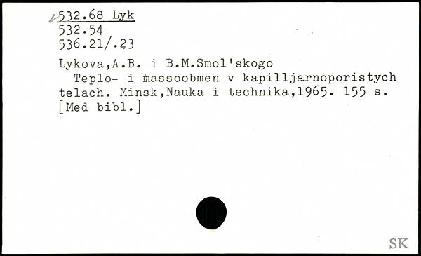 Lykova,A.B. i B.M.Smol'skogo Teplo- i ftassoobmen v kapilljarnoporistych telach.
