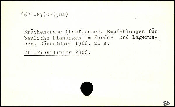 Brückenkrane (Laufkrane). Empfehlungen für "bauliche Planungen im Forder- und Lagerwesen. Düsseldorf 1966.
