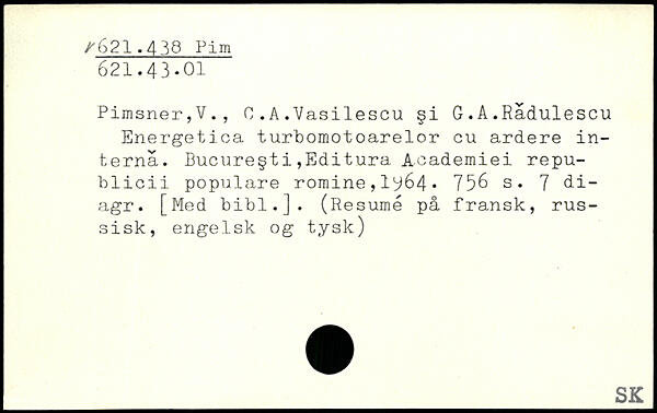 Pimsner,V., C.A.Vasilescu §si G.A.Rådulescu Energetica turbomotoarelor cu ardere interna. Bucure§ti,Editura Academiei repu-blicii populare romine,1^64.