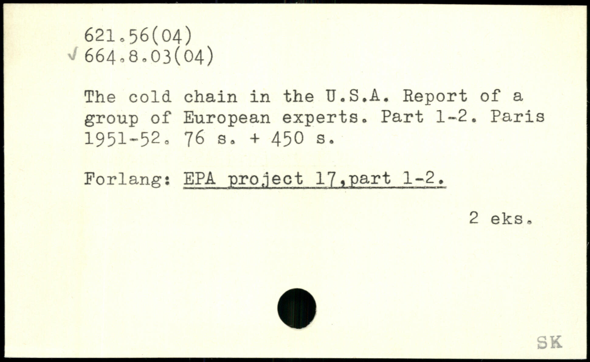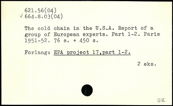 The cold chain in the U.S.A. Report of a group of European experts. Part 1-2.