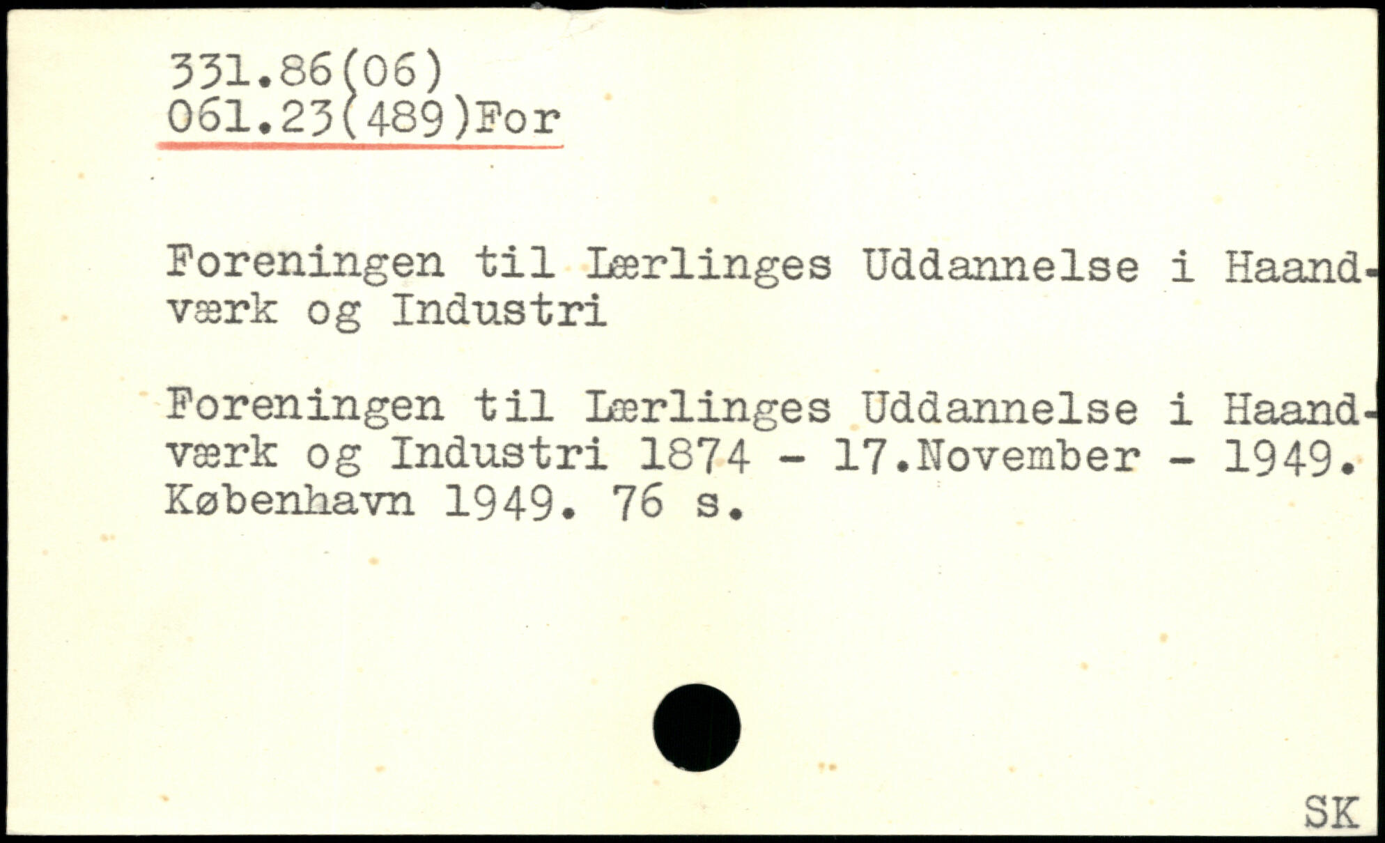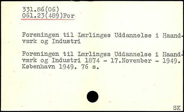 Foreningen til Lærlinges Uddannelse i Haand, værk og Industri Foreningen til Lærlinges Uddannelse i Haand -værk og Industri 1874 - 17.November - 1949.