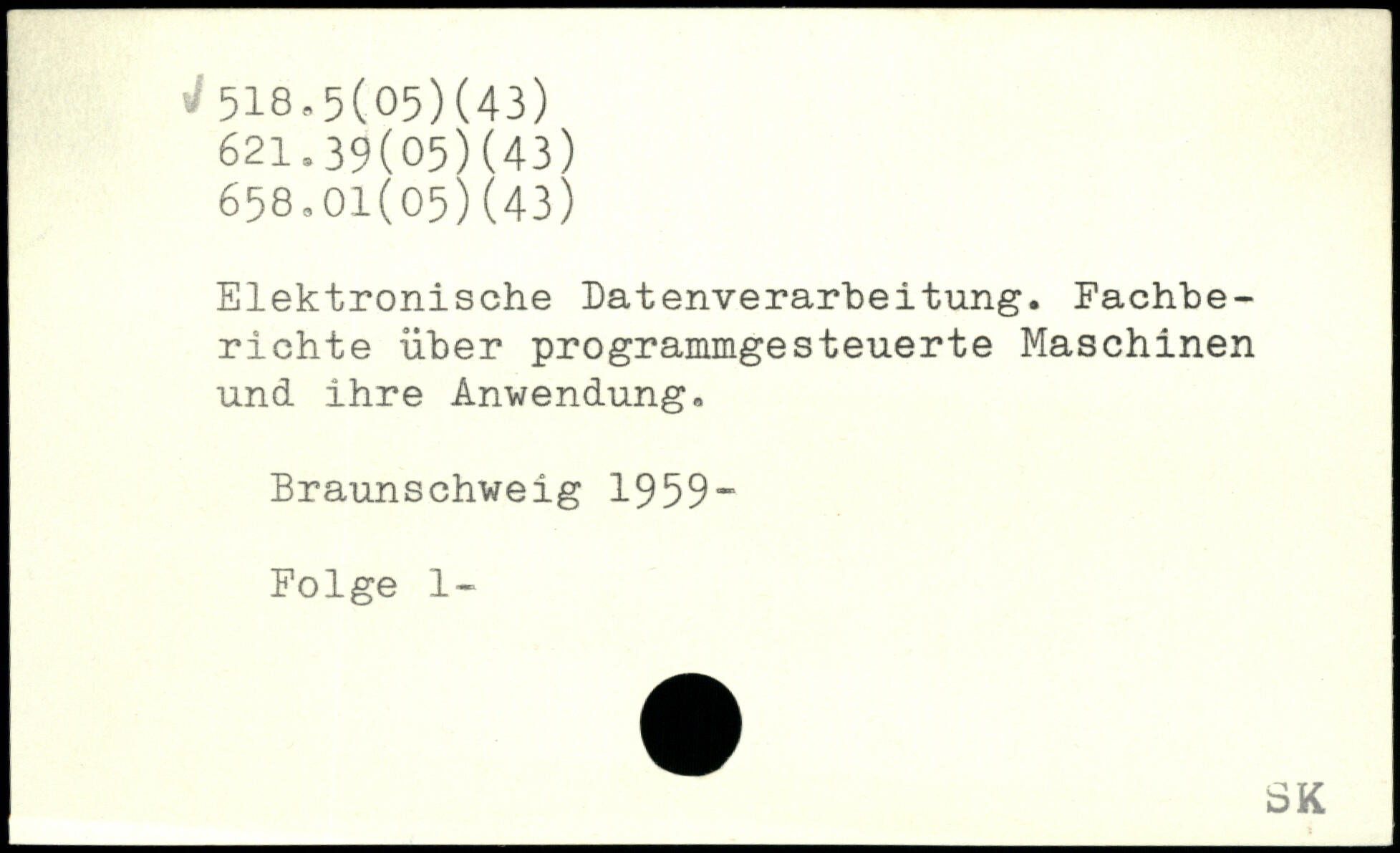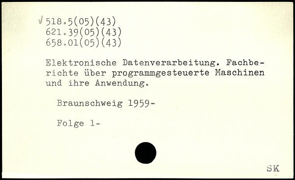 Elektronische Datenverarbeitung. Fachbe-richte über programmgesteuerte Maschinen und ihre Anwendung. Braunschweig 1959“ Folge 1-