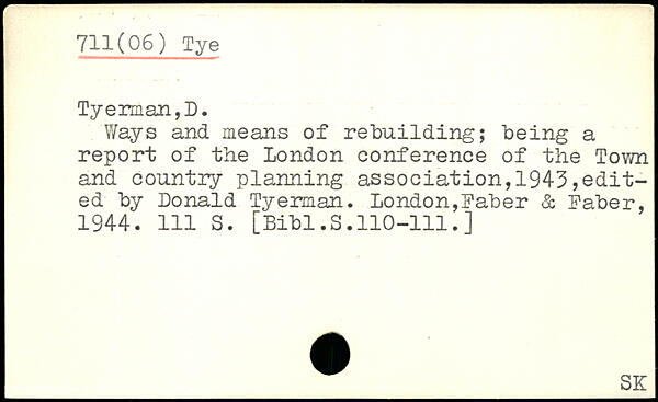 Ways and means of rebuilding; being a report of the London conference of the Town and country planning association,1943,edited by Donald Tyerman.