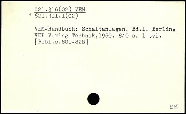 VEM-Handbuch: Schaltanlagen. Bd.l. Berlinf VEB Verlag Technik,1960.