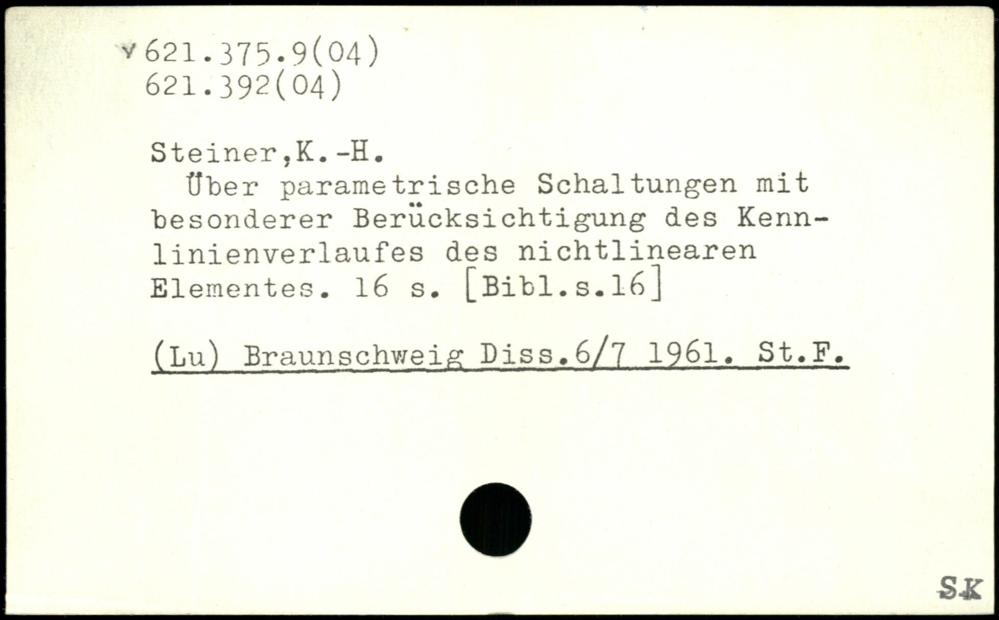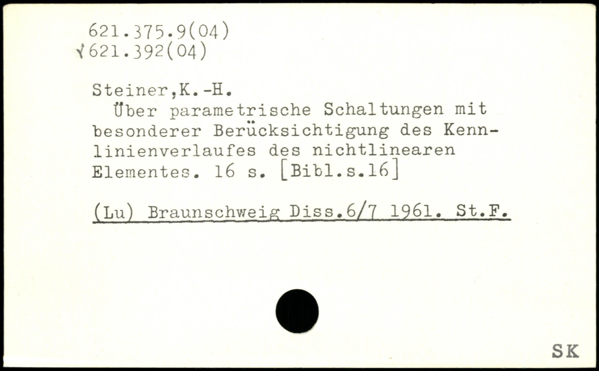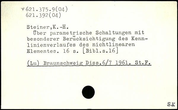 Uber parametrische Schaltungen mit besonderer Berücksichtigung des Kennlinienverlaufes des nichtlinearen Elementes. l