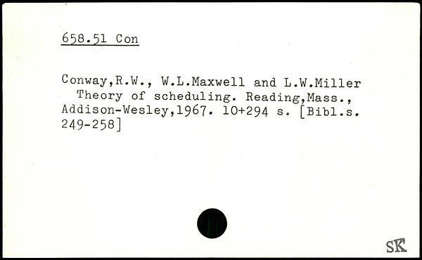 Conway,R.W., W.L.Maxwell and L.W.Miller Theory of scheduling.