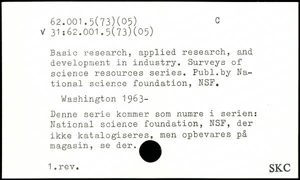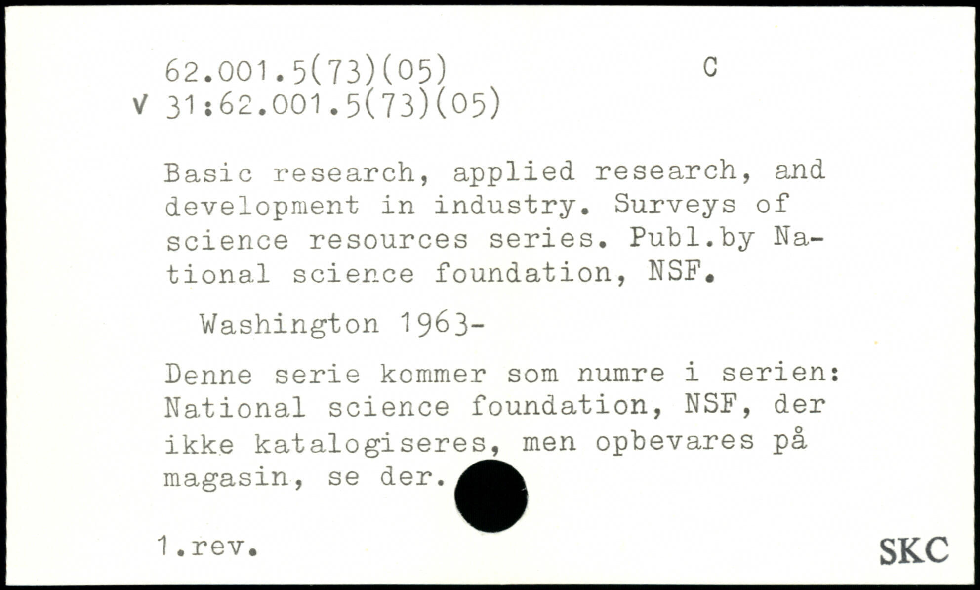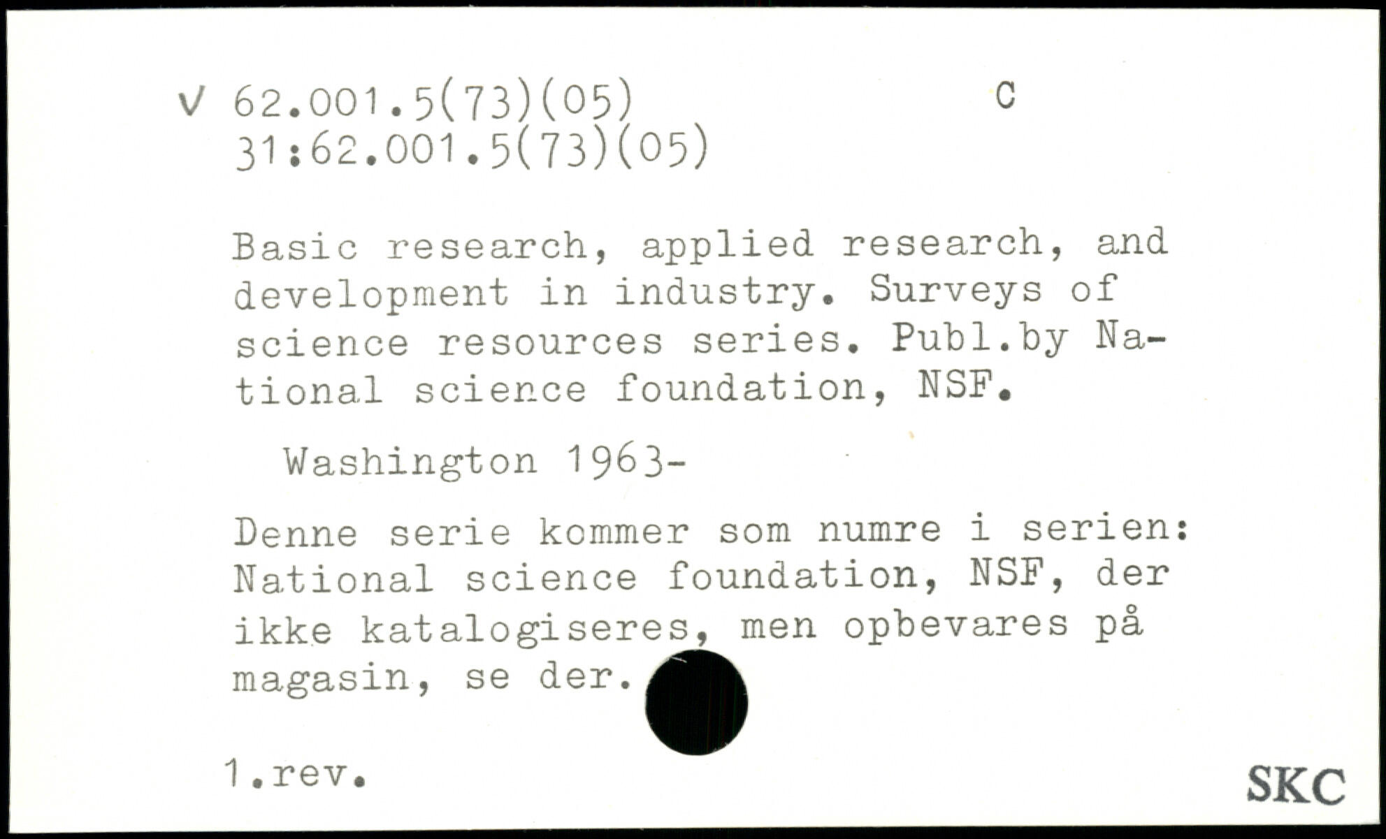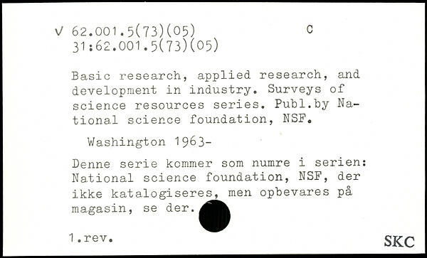 Basic research, applied research, and development in industry. Surveys of science resources series.