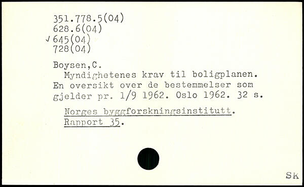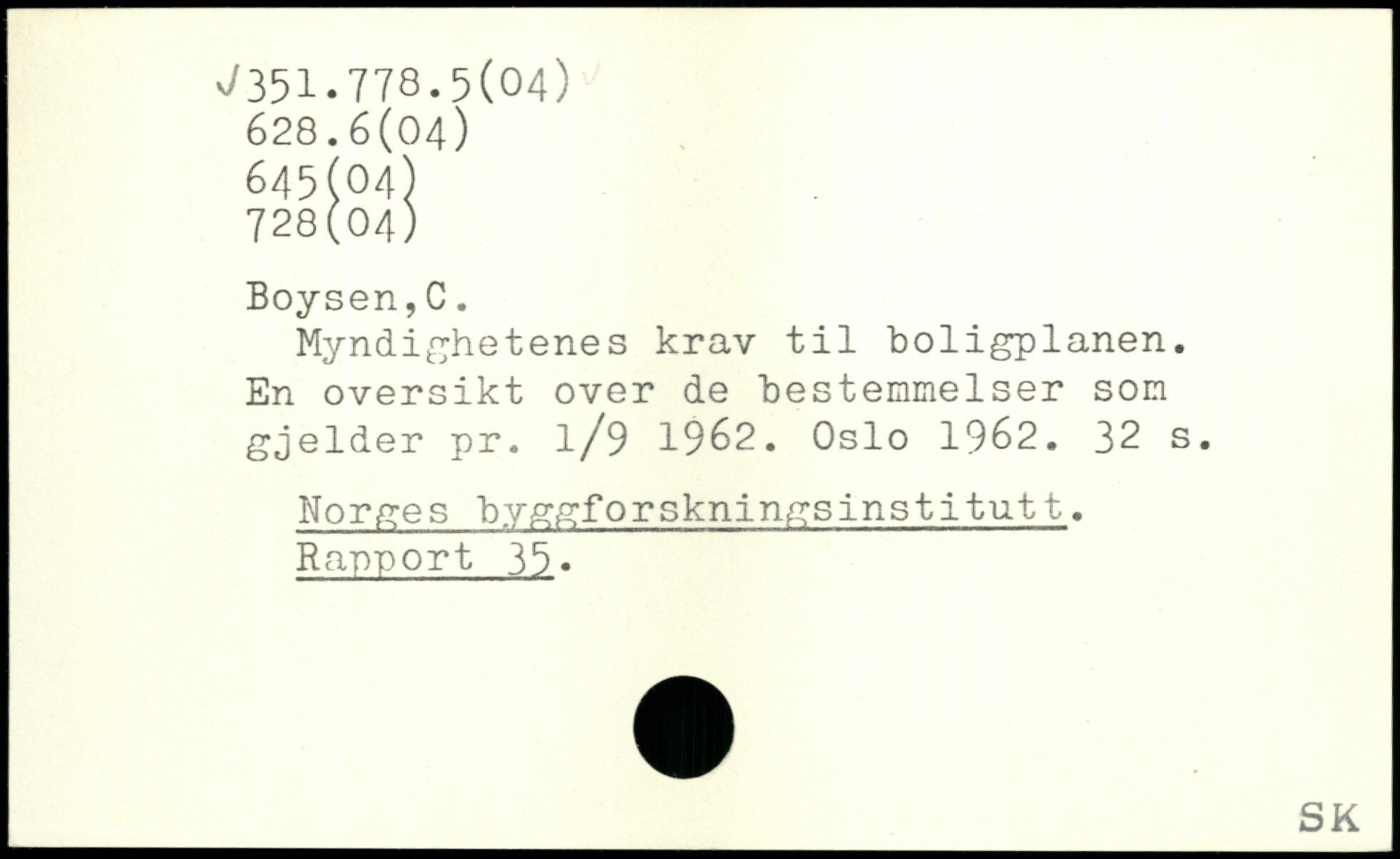 Myndighetenes krav til boligplanen. En oversikt over de bestemmelser som gjelder pr. l/9 19&2. Oslo 1962.