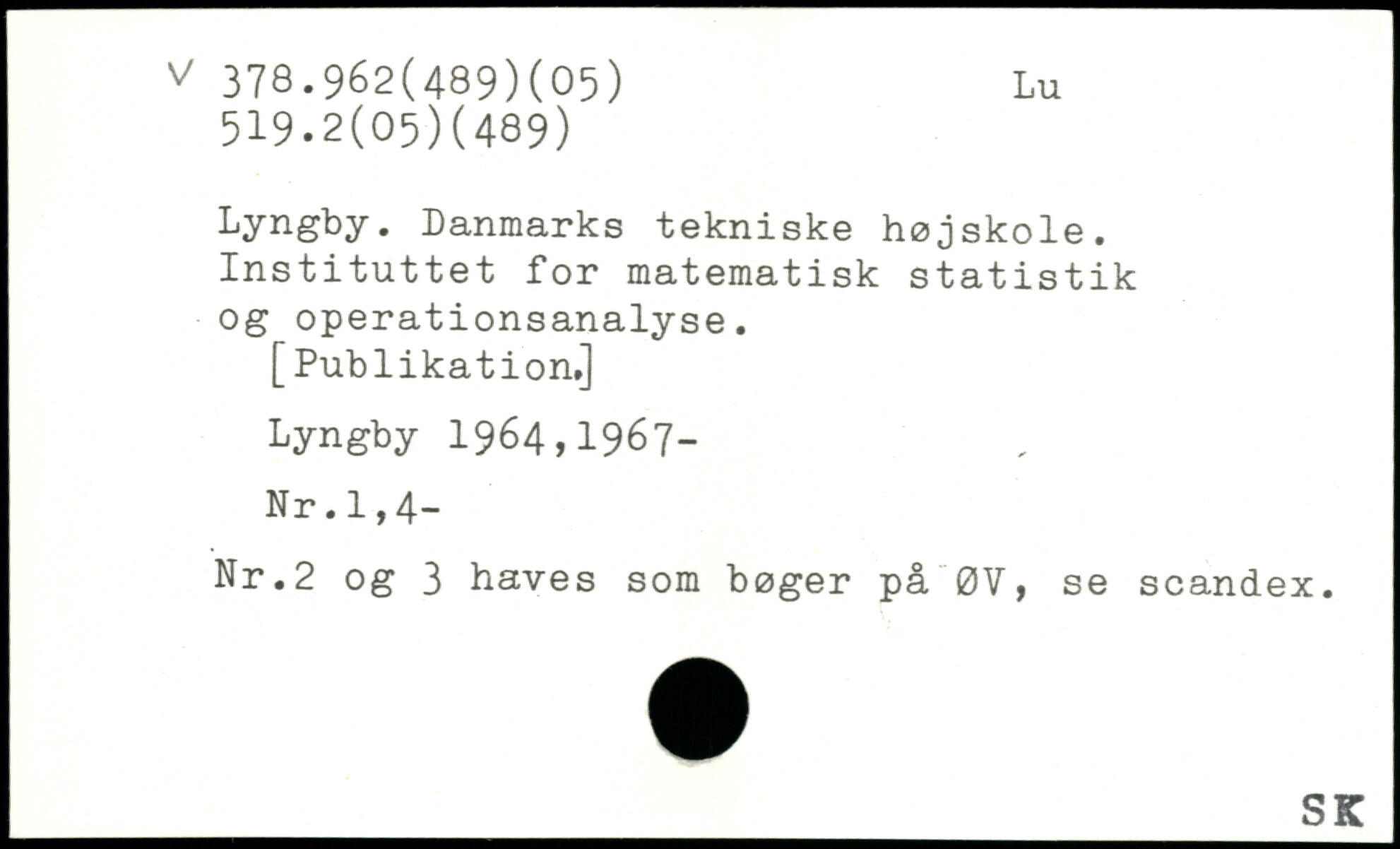 Lyngby. Danmarks tekniske højskole. Instituttet for matematisk statistik og operationsanalyse.