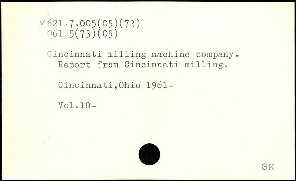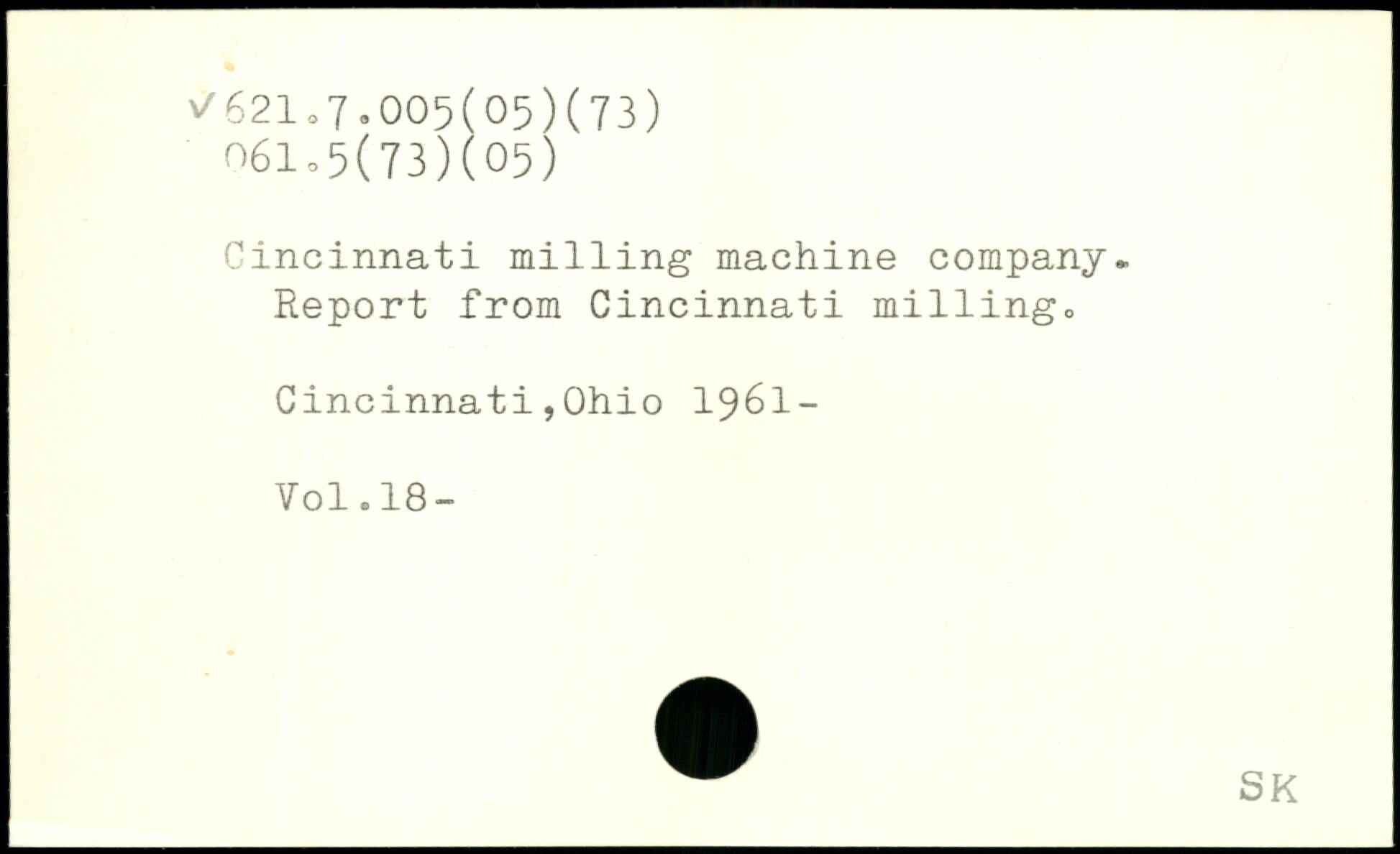 Cincinnati m1111ng machine company. Report from Cincinnati m1111ng, Cincinnati,0hio 1961-