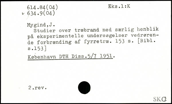 Studier over træbrand med særlig henblik på eksperimentelle undersøgelser vedrørende forbrænding af fyrretræ.
