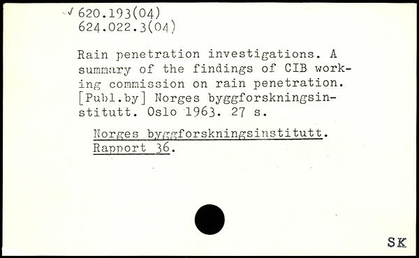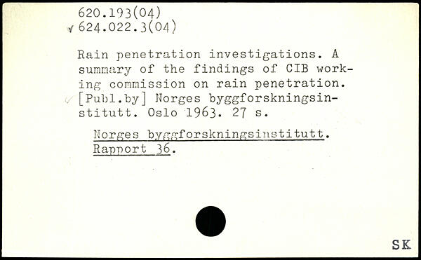 Rain penetration investigations. A summary of the findings of CIB working commission on rain penetration.