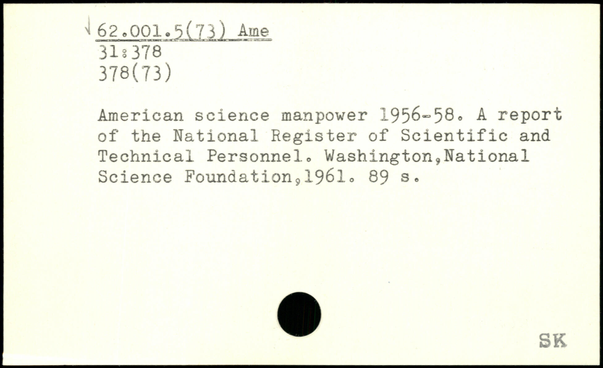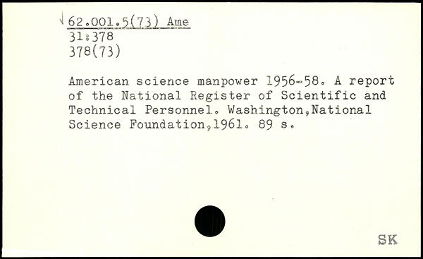 American science manpower 1956-58. A report of the National Register of Scientific and Technical Personnel. Washington9National Science Foundations 1961.