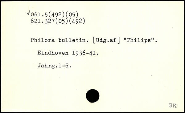 Philora bulletin. [Udg.af] "Philips”. Eindhoven 1936-41. Jahrg.1-6.