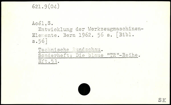 Entwicklung der Werkzeugmaschinen-Elenente. Sern 1962.