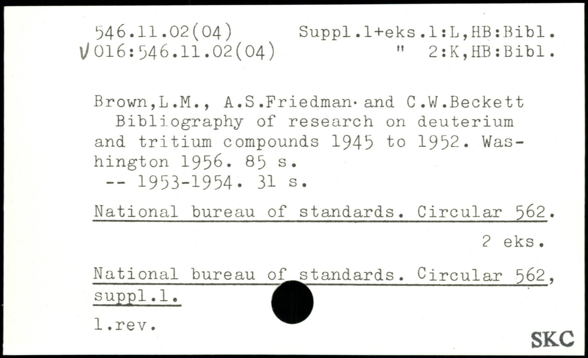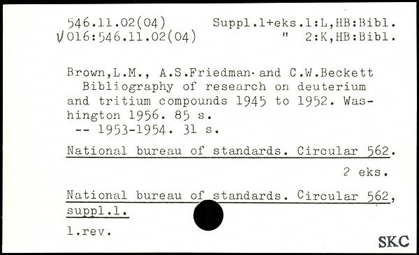Brown,L.M., A.S.Friedman-and C.W.Beckett Bibliography of research on deuterium and tritium compounds 1945 to 1952.