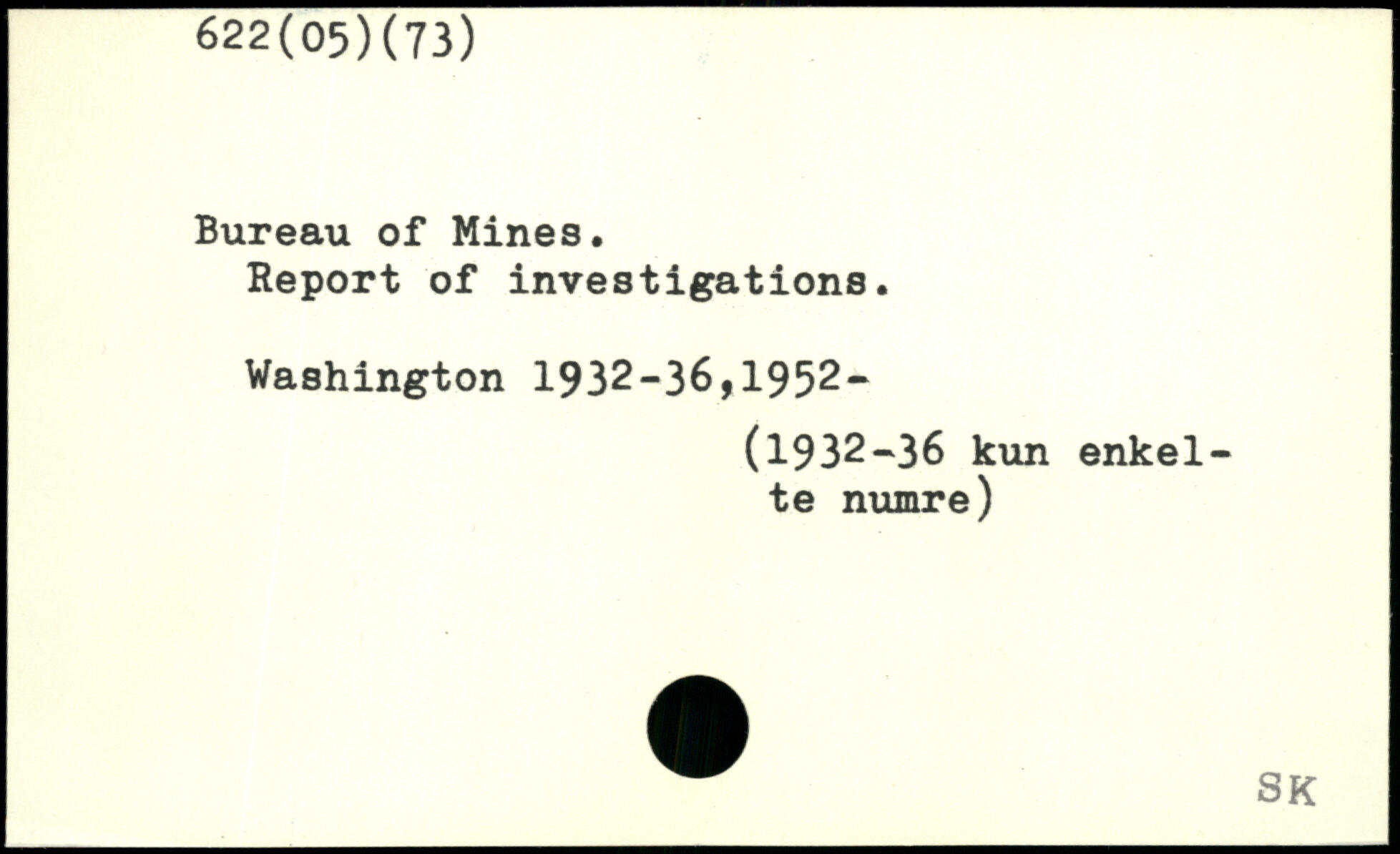 Bureau of Mines. Report of investigations.