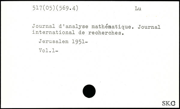 Journal d'analyse mathématique. Journal international de recherches. Jérusalem 1951- Vol.l-
