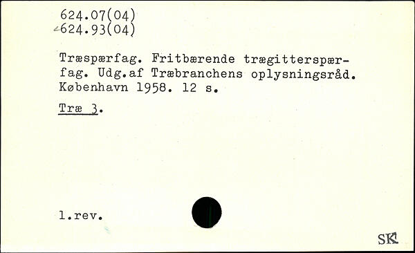 Træspærfag. Fritbærende trægitterspær-fag. Udg.af Træbranchens oplysningsråd.