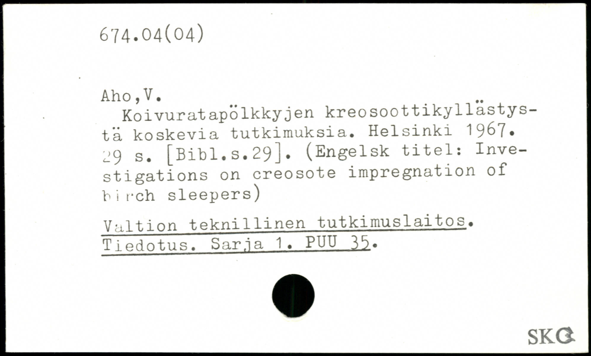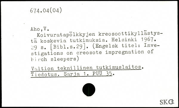 Aho , V. .. Koivuratapolkkyjen kreosoottikyllastys-ta koskevia tutkimuksia. Helsinki 19^7, -