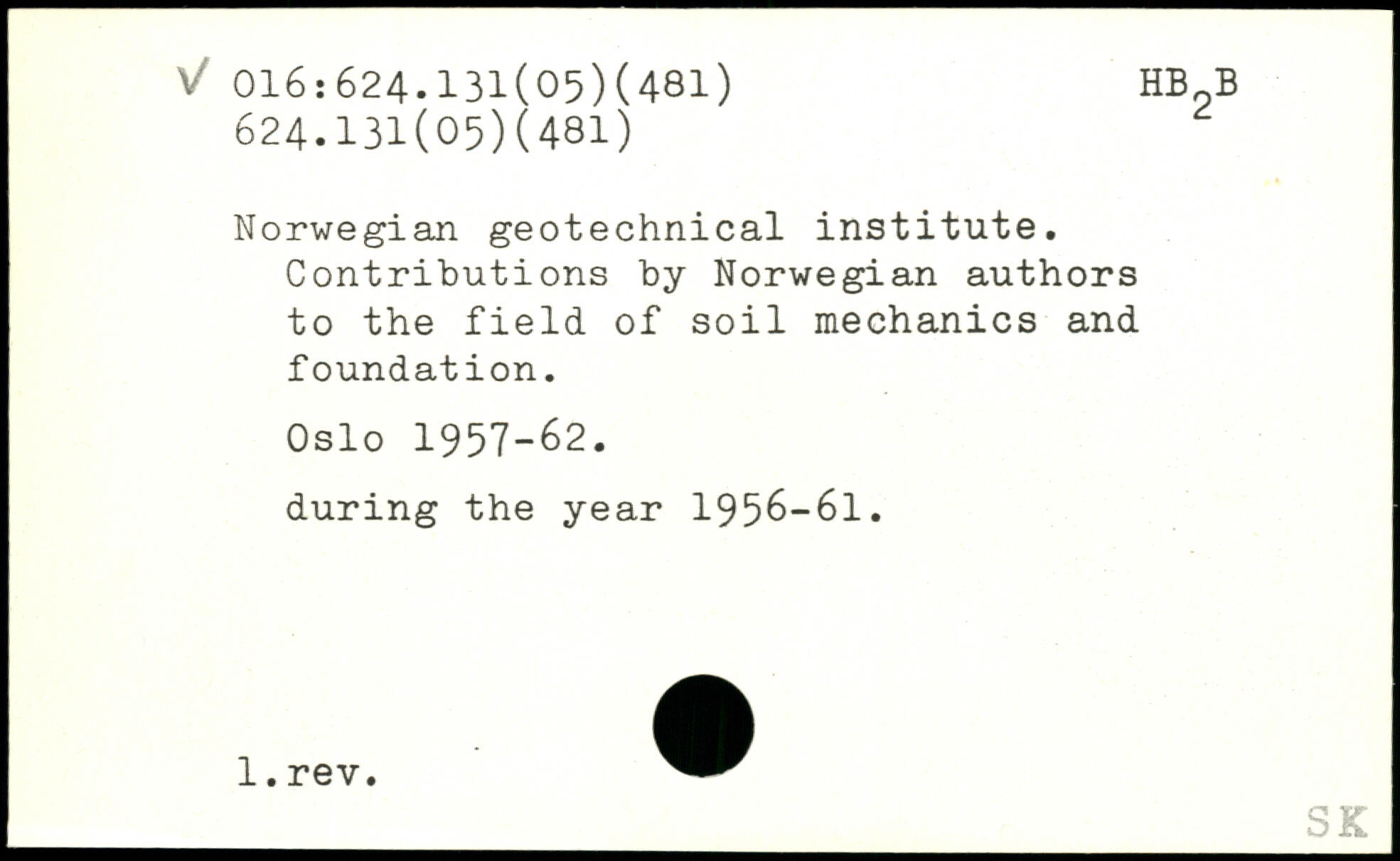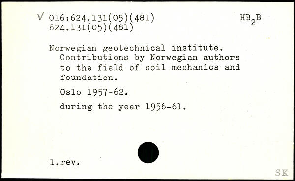 Norwegian geotechnical institute. Contributions by Norwegian authors to the field of soil mechanics and foundation. Oslo 1957-62. during the year 1956-61.