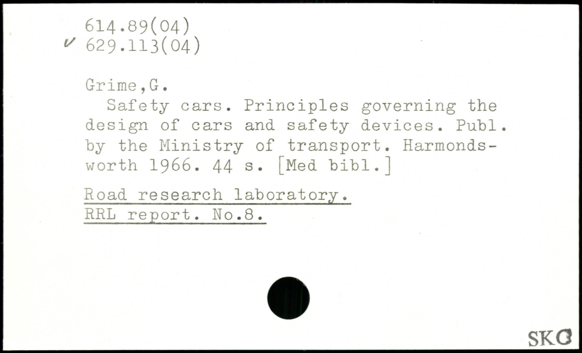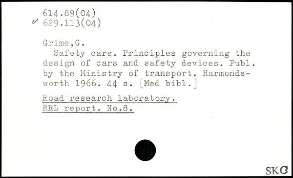 Safety cars. Principles governing the design of cars and safety devices. Publ. hy the Ministry of transport. Harmonds-worth 1966.