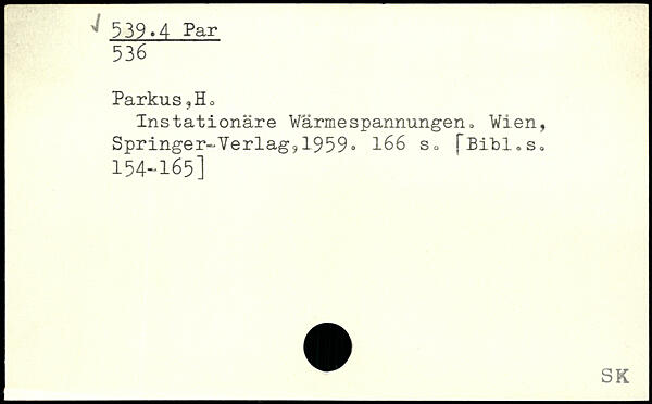 Instationäre VärmeSpannungen , Wien, Springer-Verlag, 1959, 166 s0 [Bibles, 154-165]