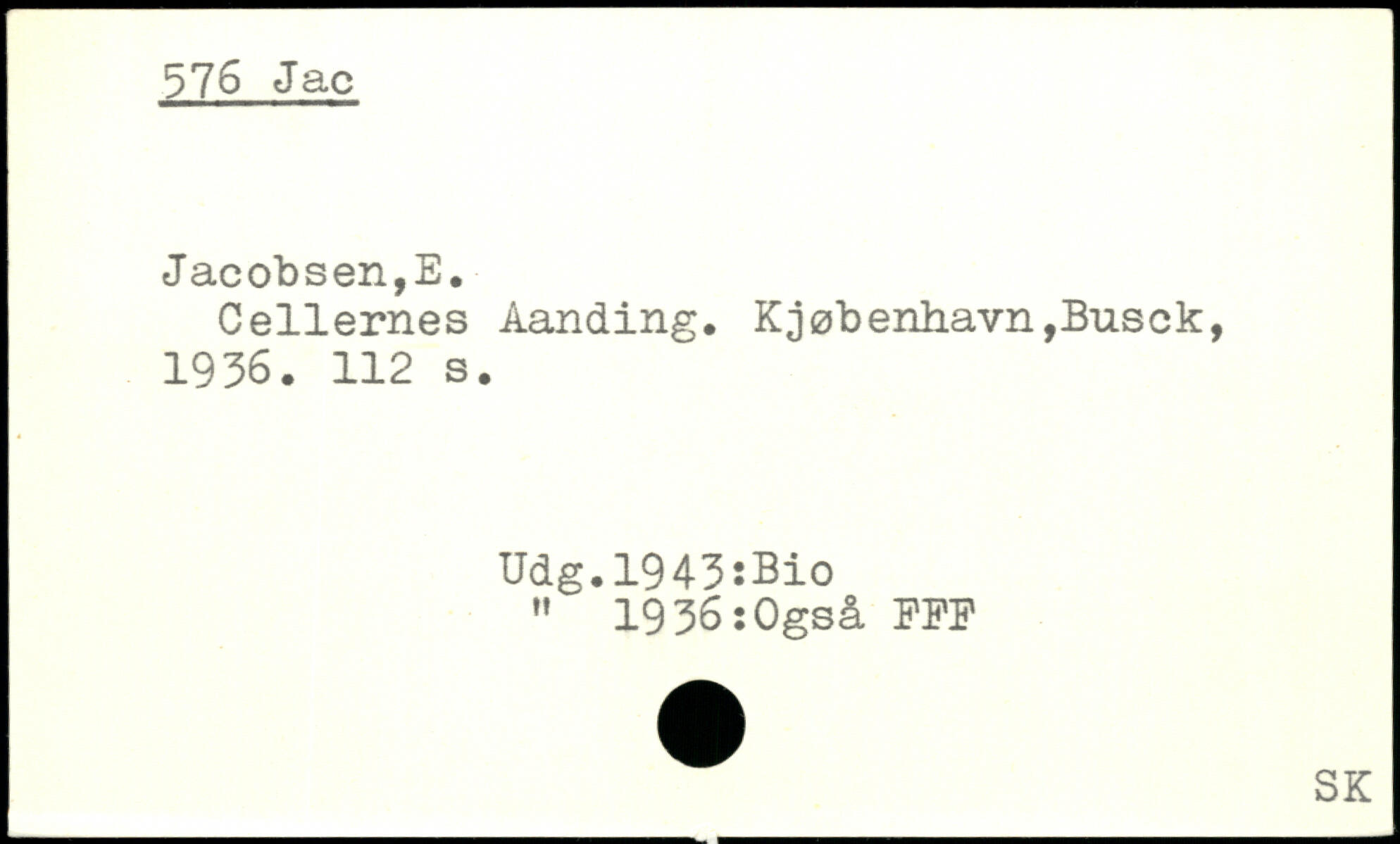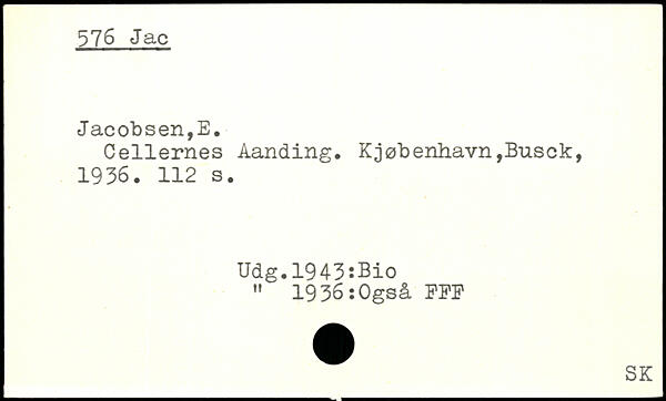 Cellernes Aanding. K;jøbenliavn,Biisck, 1936.