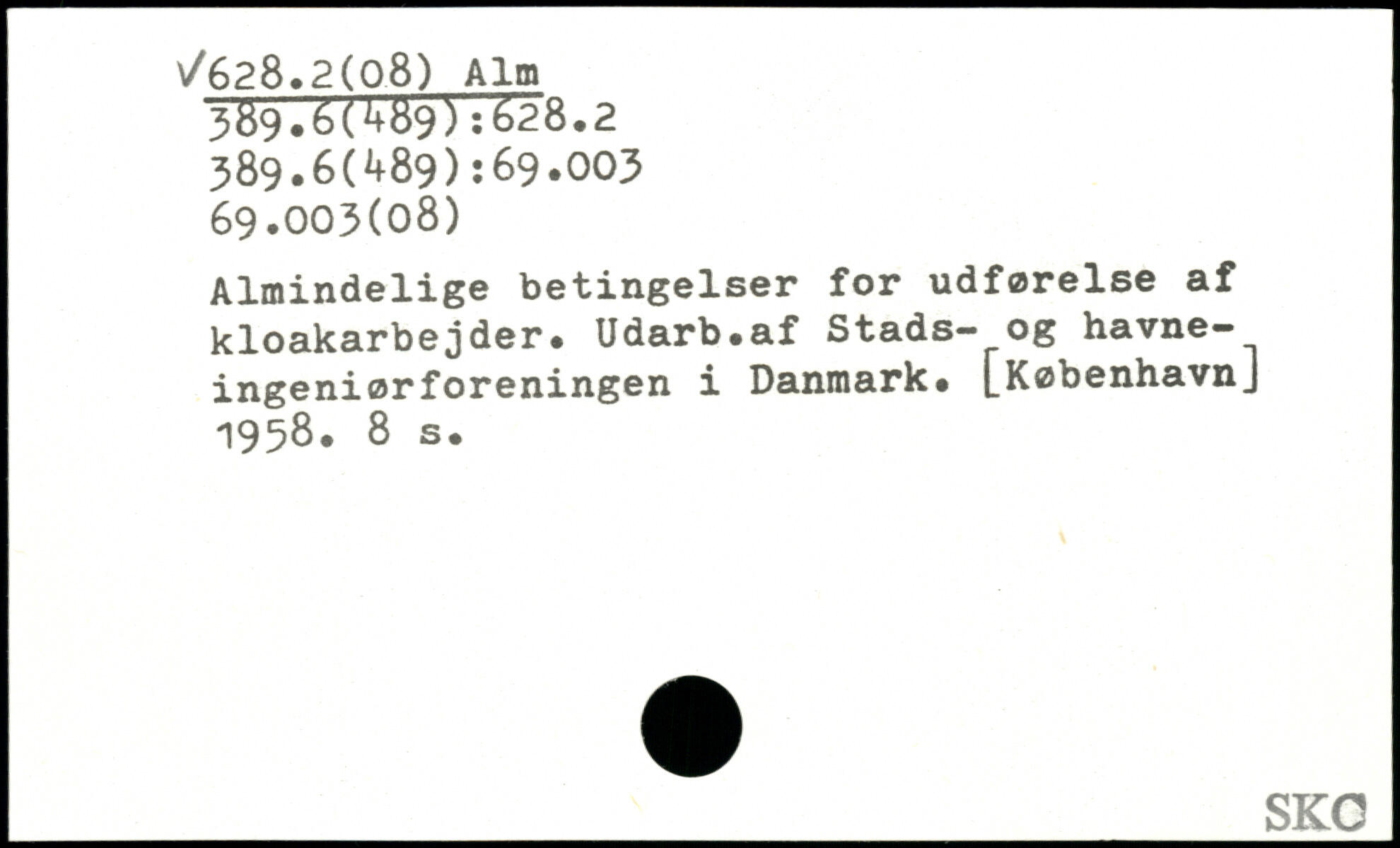 Almindelige betingelser for udførelse af kloakarbejder. Udarb.af Stads- og havneingeniørforeningen i Danmark. [KøbenhavnJ 1958.