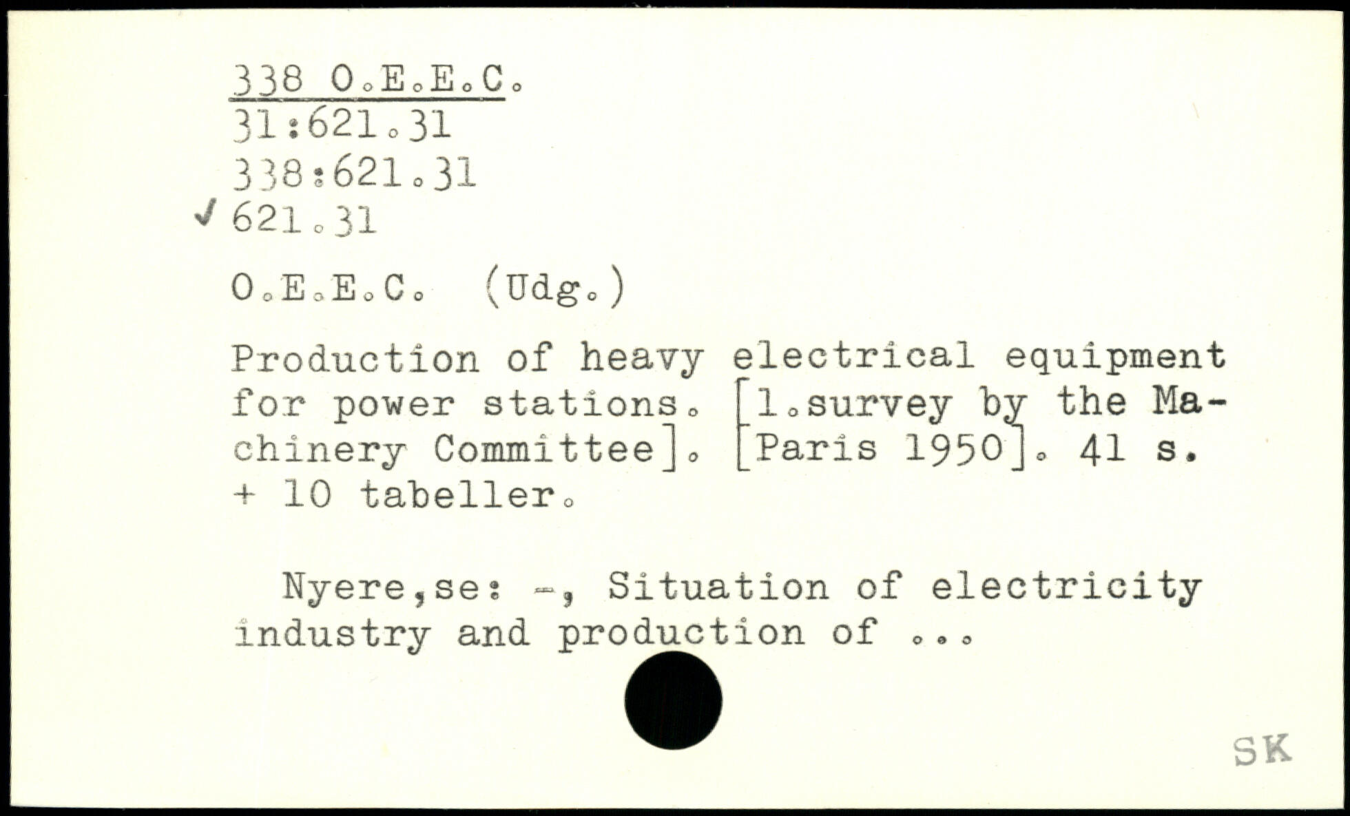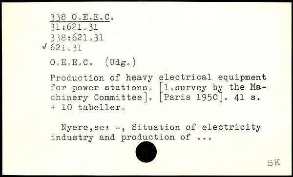 OoEoEoCo (üdg,) Production of heavy electrical equipment for power stations, 1,survey by the Ma chinery Committee]0
