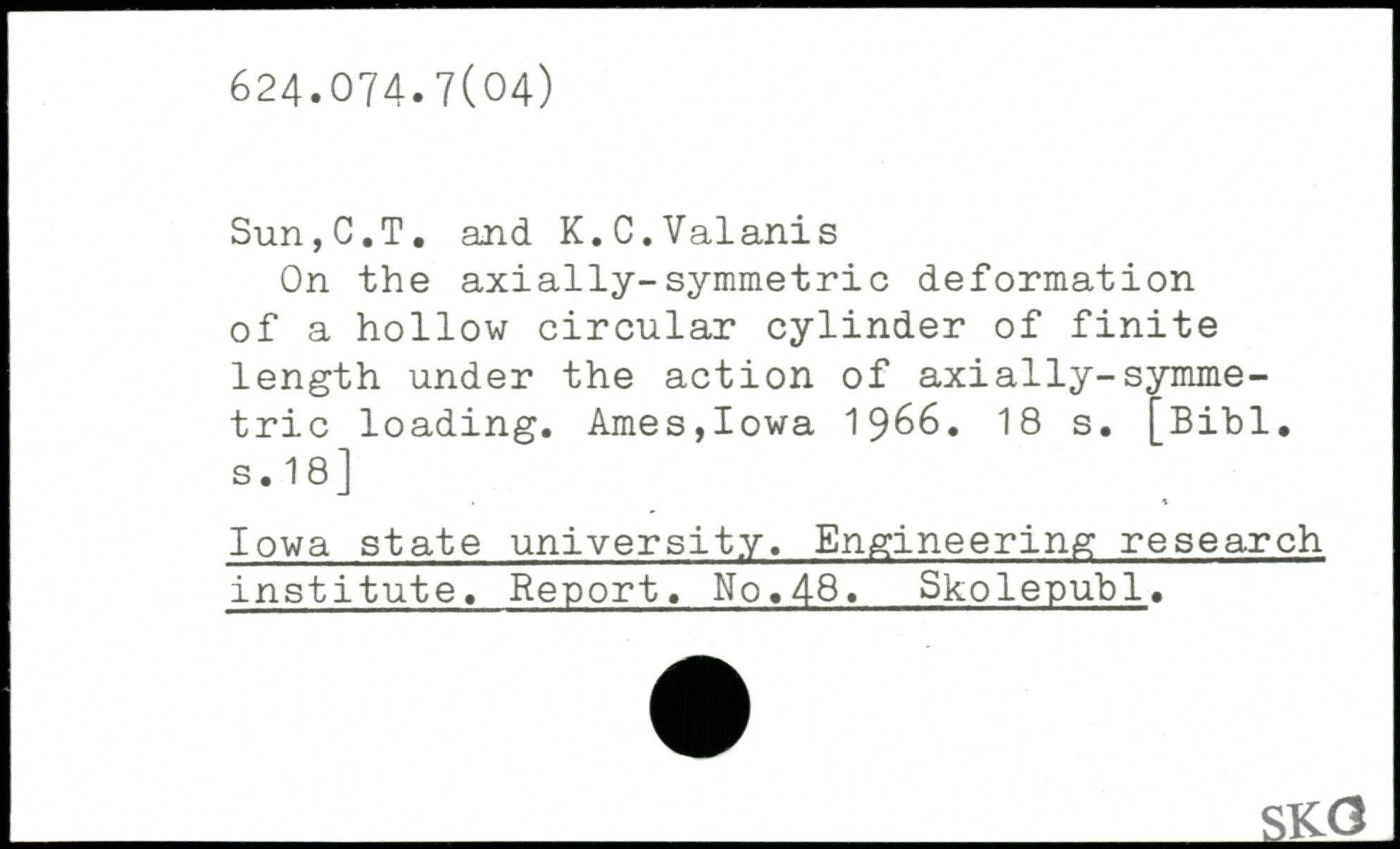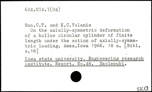 On the axially-symmetric deformation of a hollow circular cylinder of finite length under the action of axially-symmetric loading. Ames,Iowa 1966.